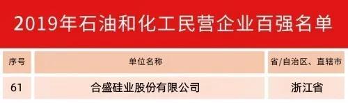 11月29日,2019中國石油和化工民營企業(yè)發(fā)展大會在北京人民大會堂召開,會上發(fā)布了2019中國石油和化工民營企業(yè)百強(qiáng)榜單,合盛硅業(yè)股份有限公司位列榜單第61位。
